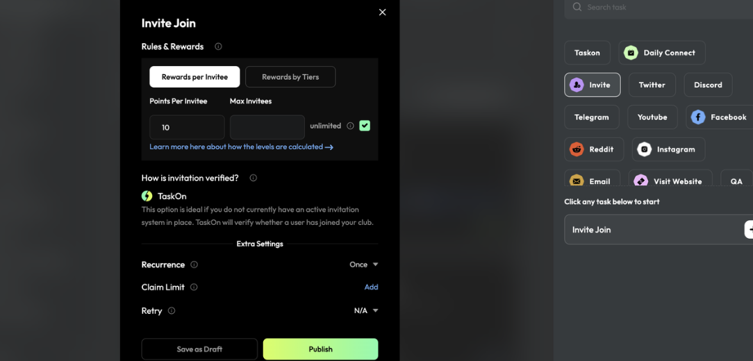 Sharing System: Users can participate in invitation tasks set by the project. While recommending the project, they can also earn points.