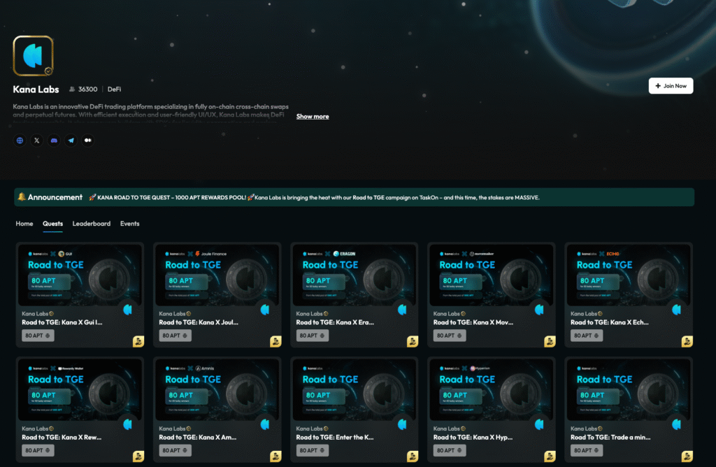 Ahead of its TGE, Kana Labs launched a series of Quests on TaskOn, using weeks of challenges to achieve precise rewards and community celebration. The brand narrative was woven into the task flow, helping users build emotional connections through participation.
