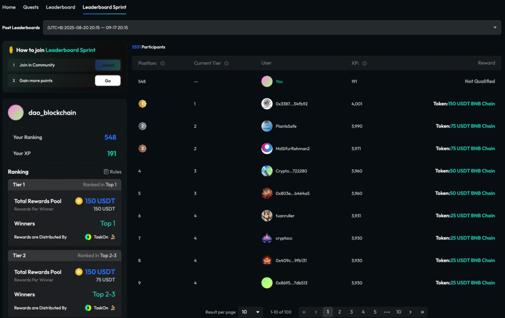 TaskOn’s templated task designs help projects quickly launch campaigns; full-chain tracking ensures verifiable engagement; and Leaderboard Sprints maximize outreach by motivating users through real-time ranking visibility.