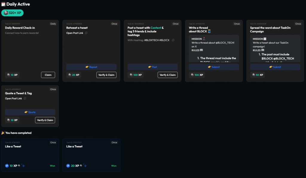 Using TaskOn’s task tracking, the BLOCX team could accurately measure which users completed tasks and how much engagement and traffic they generated.