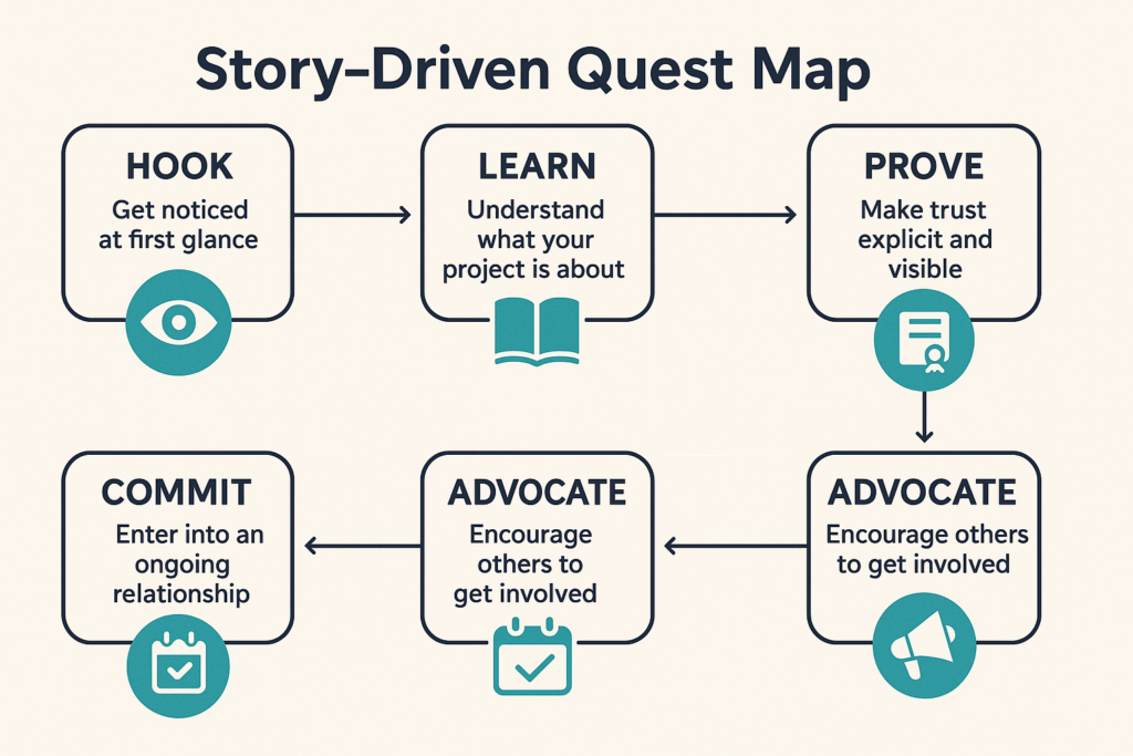 Every Quest isn’t merely a campaign; it’s a narrative path—guiding users from “Discovery” to “Action,” and finally to “Trust and Participation.”