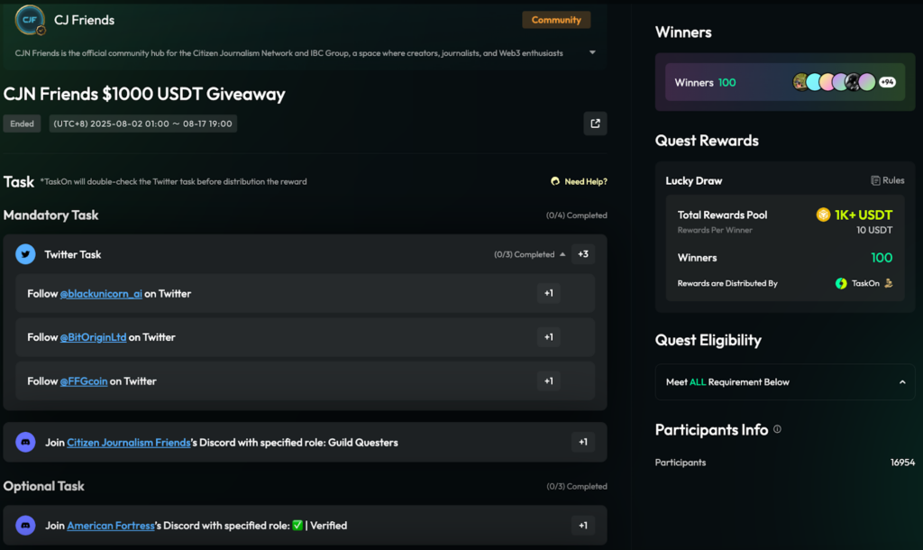 TaskOn provides projects with a plug-and-play growth engine. Whether you are a startup going from 0 to 1, or a mature project seeking a breakthrough, CJ Friends’ “Mandatory Entry + Social Virality” model is a best practice worth replicating on TaskOn immediately.