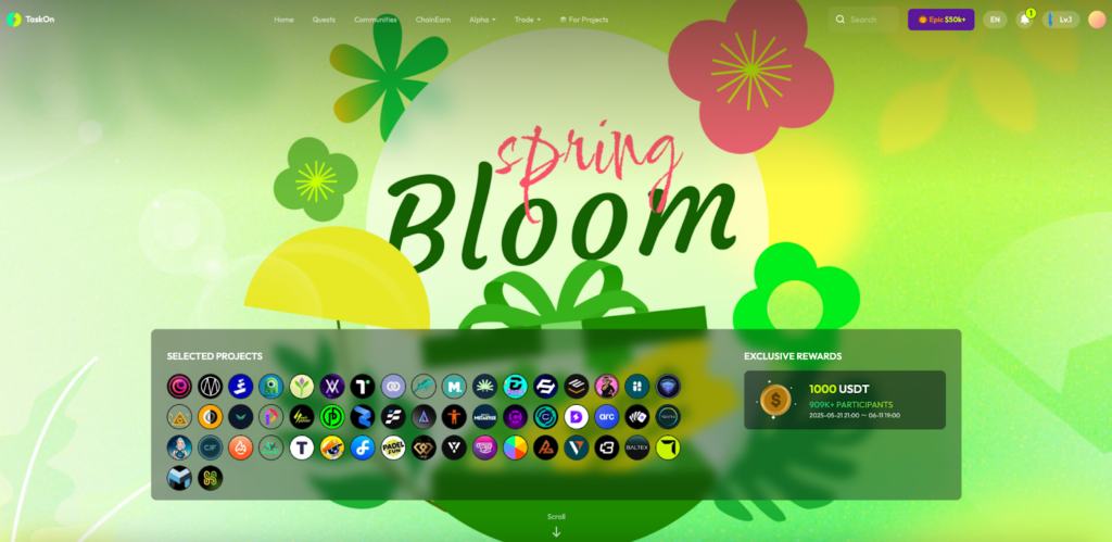 Spring Bloom is TaskOn’s fixed seasonal campaign, now possessing mature brand influence. In this year’s Spring Bloom, a total of 50+ projects participated.